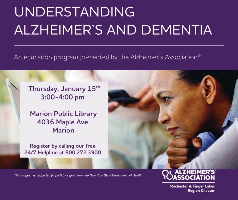 We will be hosting the Alzheimer’s Association for an education session in our community room.