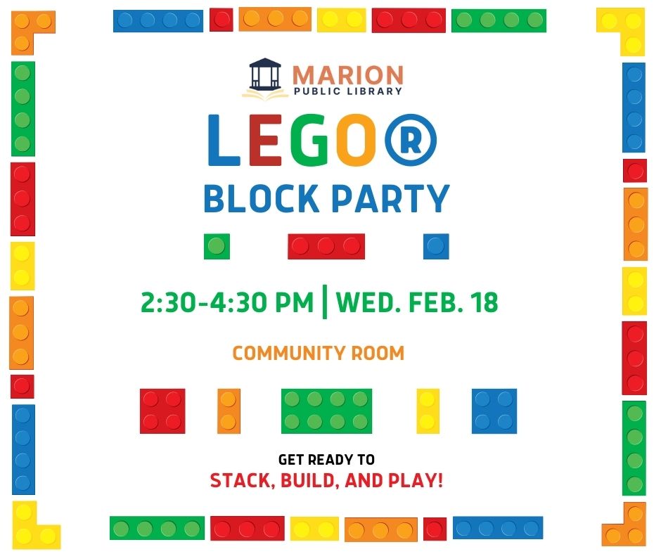 FeaturedLEGO® Block Party Play is learning! Join our LEGO® play session at the library - a fun way to spark creativity, problem-solving, and imagination. No registration - Adult supervision required.